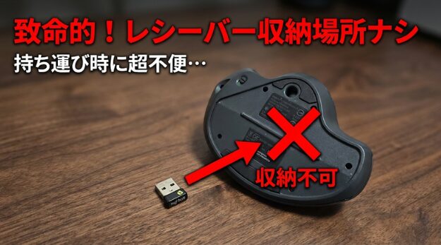 - USBレシーバーの収納スロットがない: BluetoothとUSBレシーバーを併用・使い分けしている人にとって、レシーバーの置き場がなく紛失リスクが極めて高い。